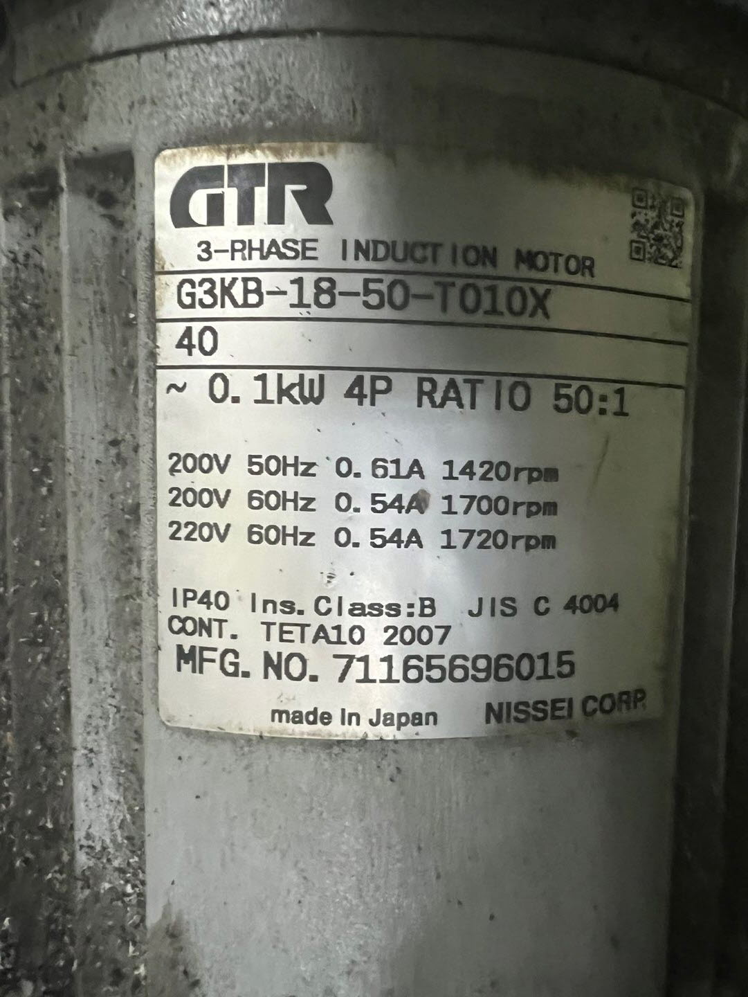 GTR,Electric,Motor,G3KB-18-50-T010X.,NISSEI,GEARMOTOR,니세이,인덕션모터,1420,1700,1720 VIEW1